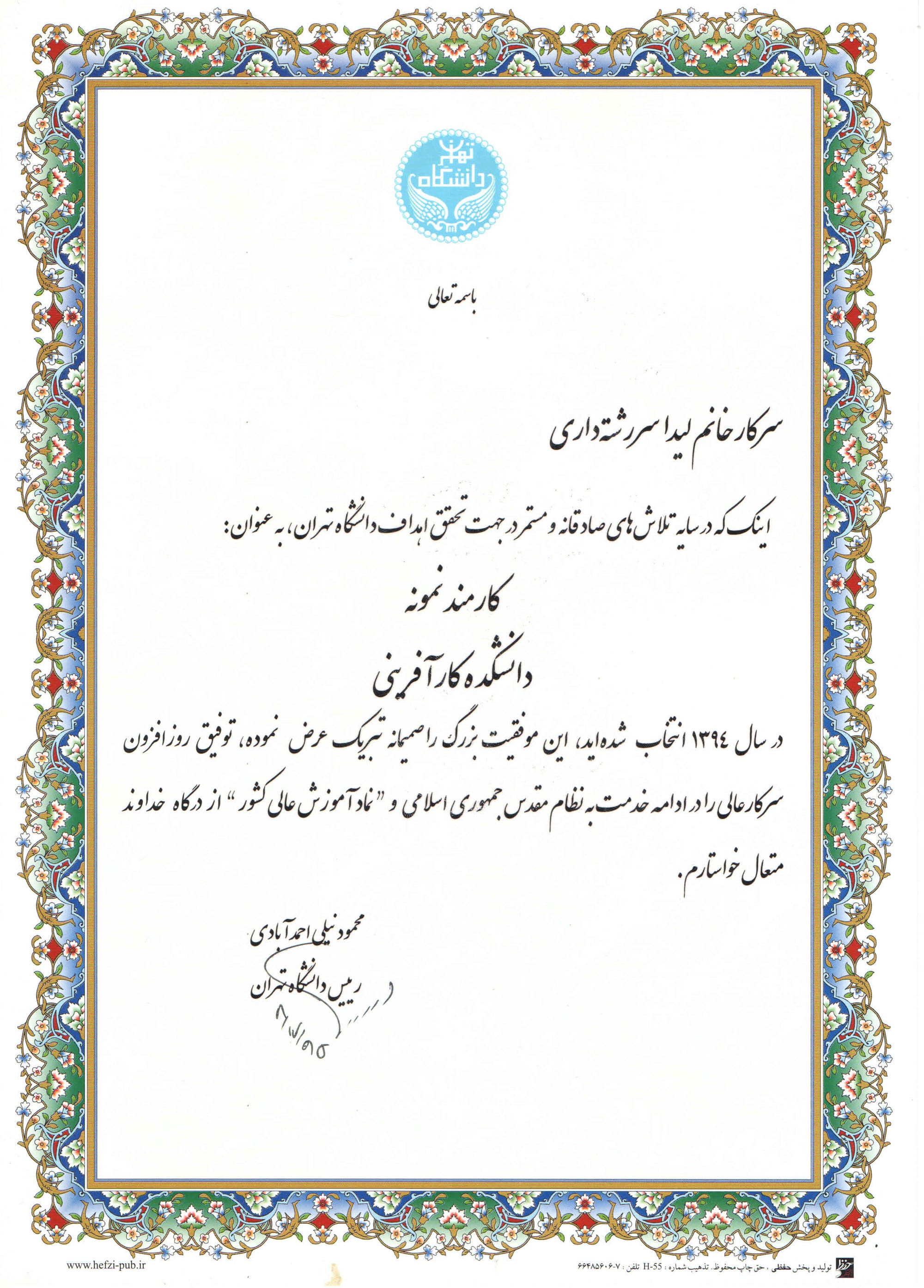 Best employee of the University of Tehran in faculty of Entrepreneurship (2015).
